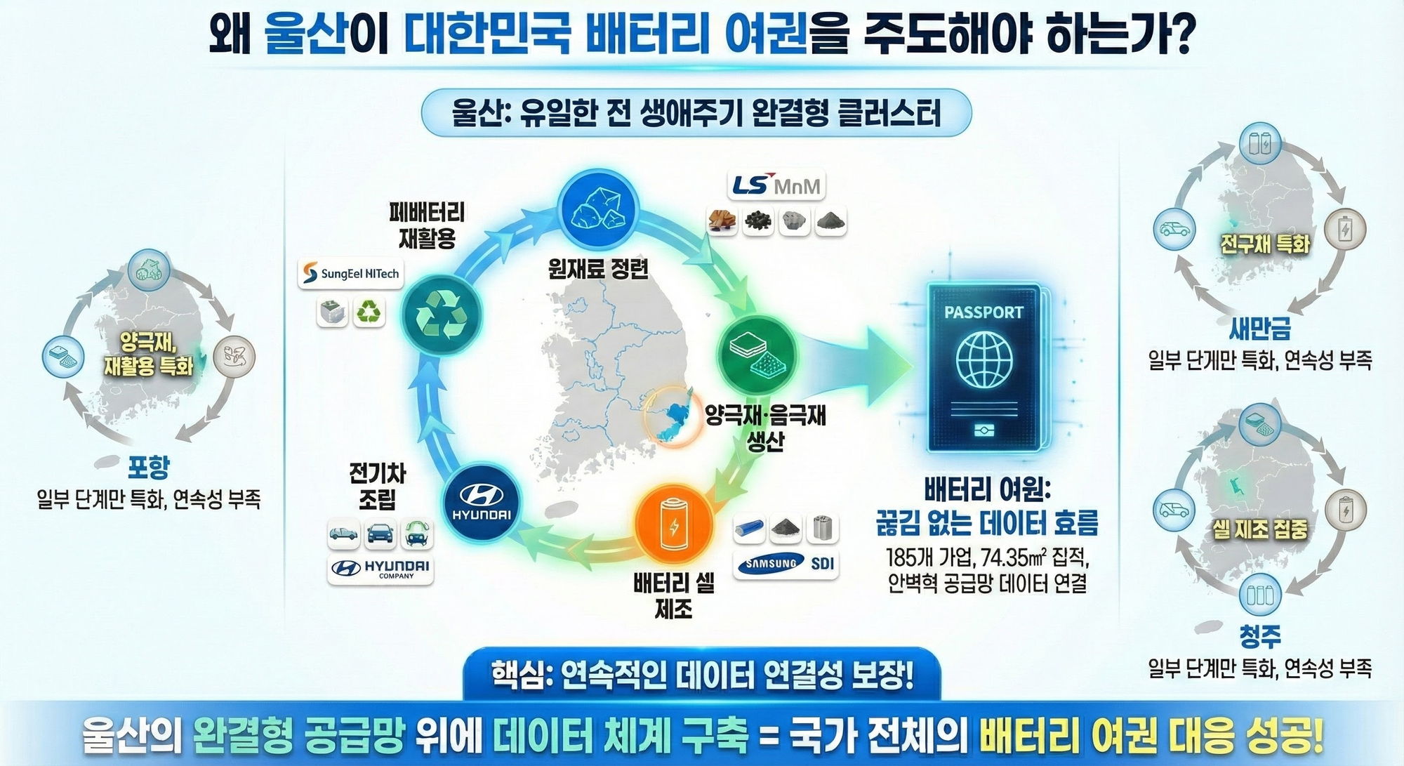 배터리 소재는 청주, 포항, 천안 등 전국에 흩어져 있거든요. 이 지역들이랑 데이터를 연동해서 "한국형 배터리 공급망 추적 시스템"을 만들겠다는 계획이에요.