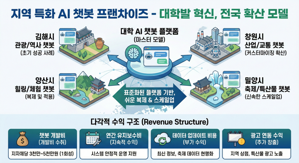 대학이 지역 관광, 특산물, 축제 정보 등을 담은 AI 챗봇을 개발하고, 이걸 다른 지자체에도 커스터마이징해서 판매하는 거예요.